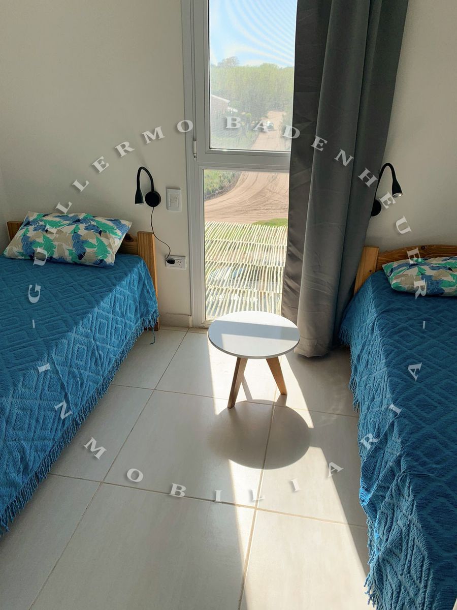 El segundo dormitorio cuenta con dos camas individuales, mesa de luz, cortinas, placares y baño en suite.