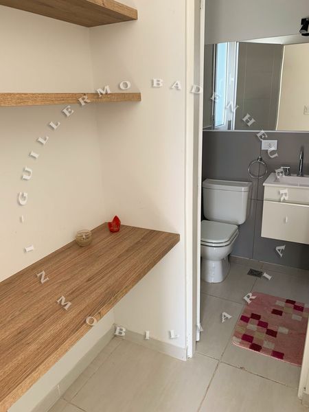 La cocina tiene heladera con freezer, microondas, horno, exprimidora, pava electrica junto con los distintos materiales de cocina. Este departamento cuenta con lavarropas, tender y un toilet.