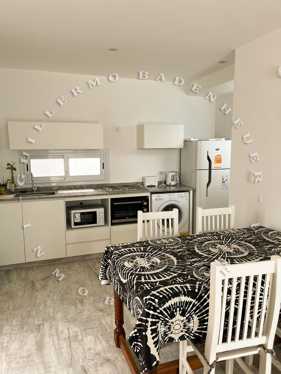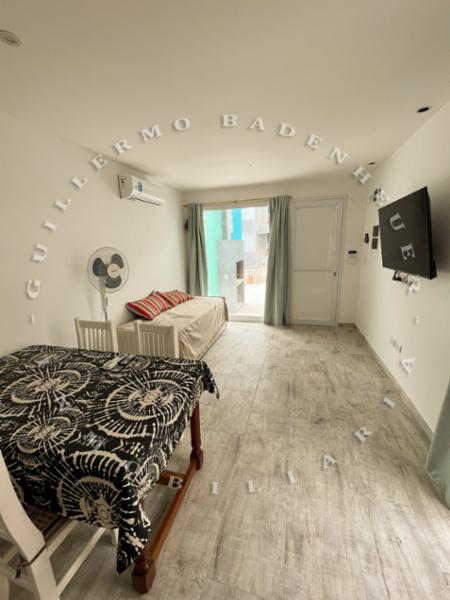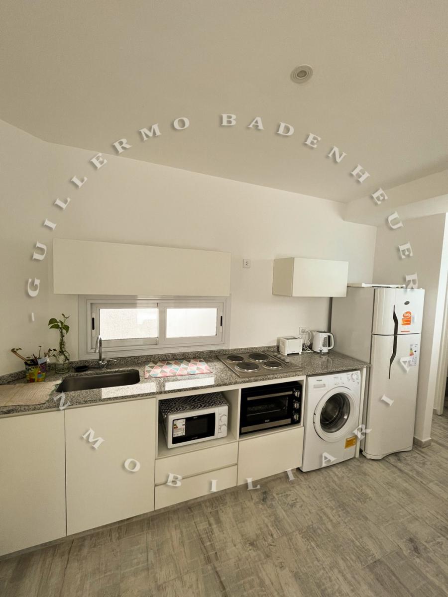 El departamento ofrece una entrada al living/comedor de concepto abierto donde se encuentra una cama marinera con otra cama abajo donde esta el aire acondicionado, wifi y televisor. La cocina posee una heladera con freezer, microondas, horno electrico, pava eléctrica y tostadora junto con los distintos materiales de cocina.