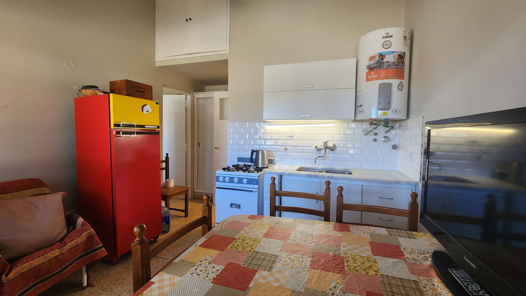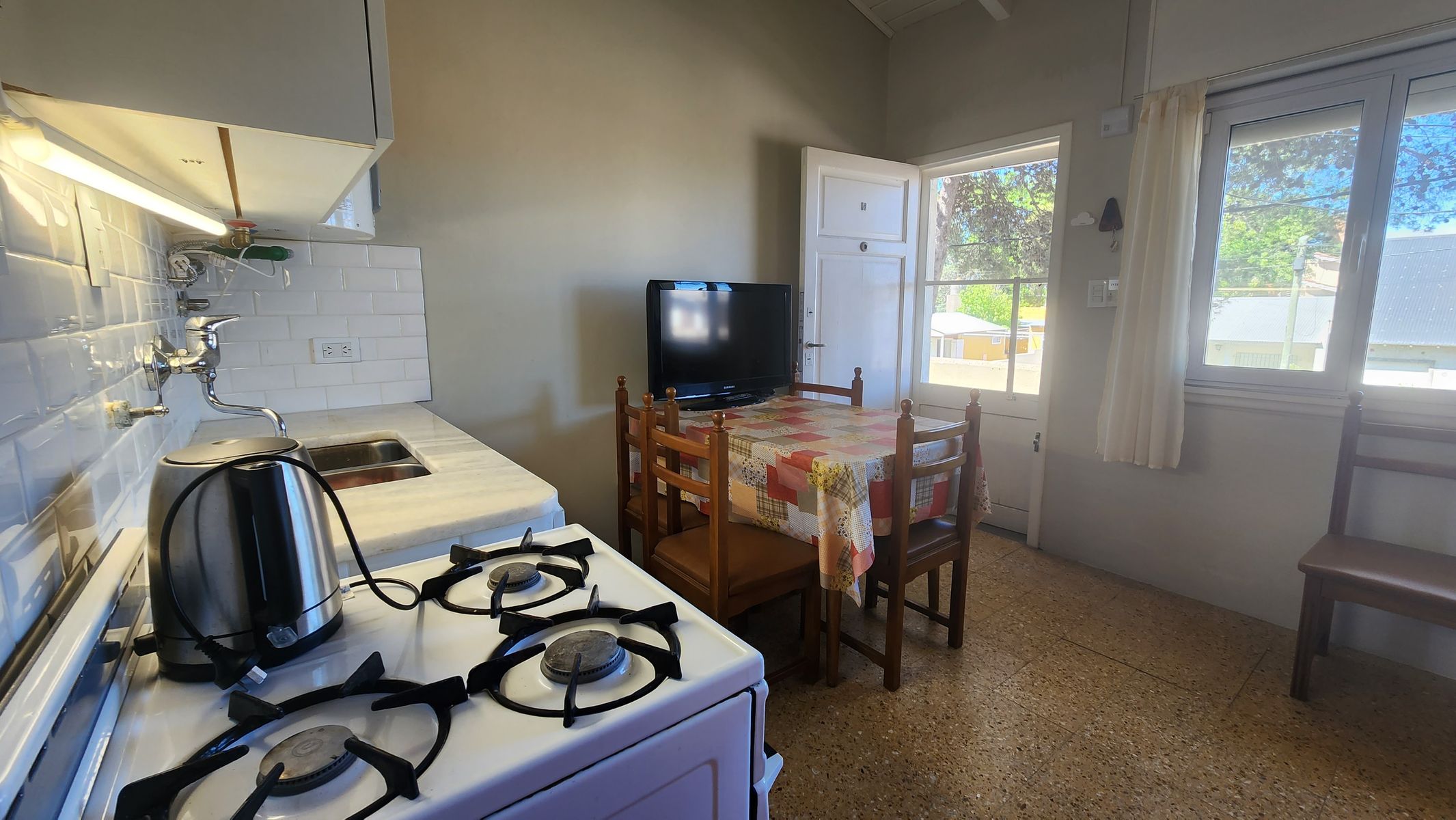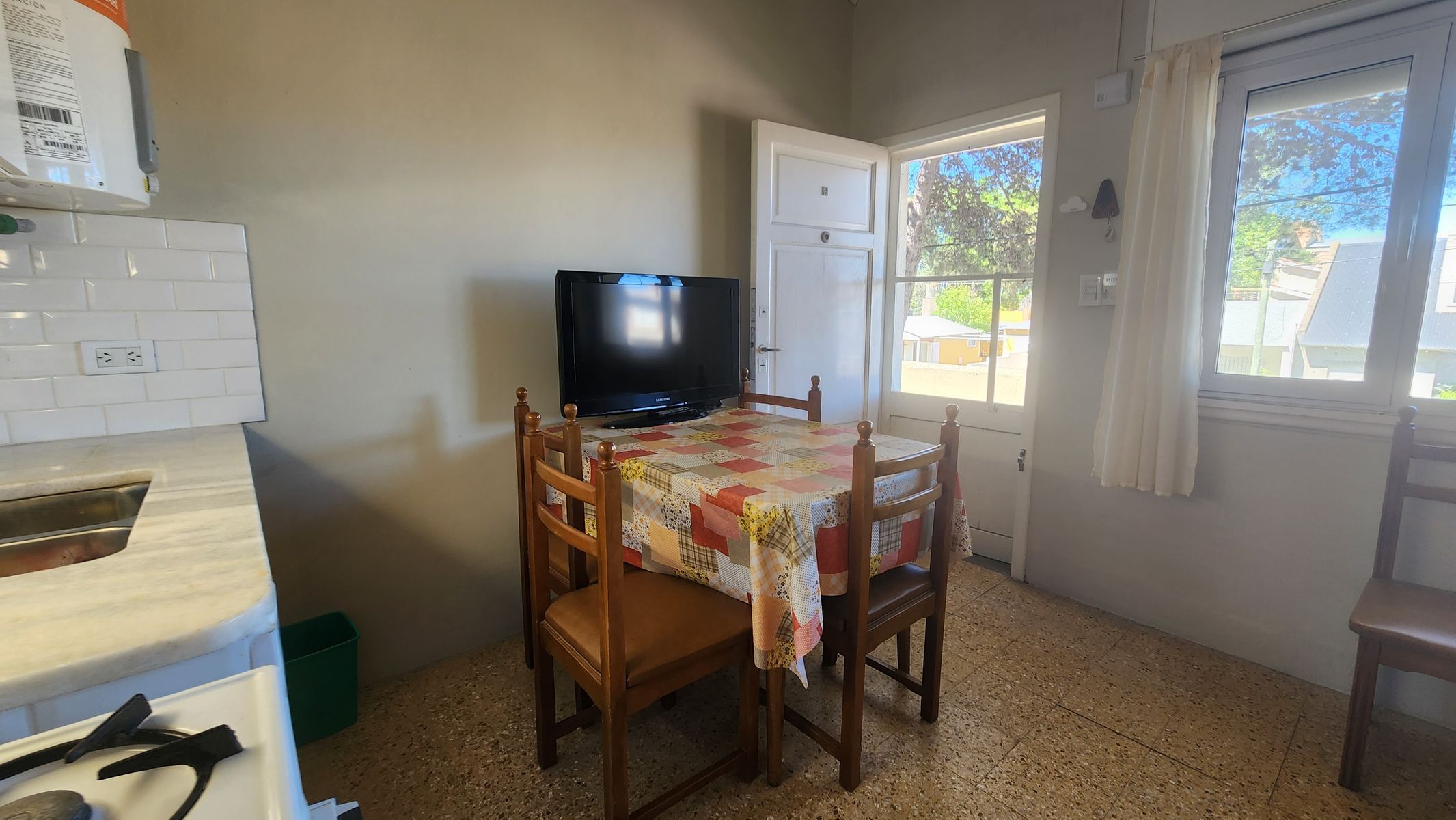 AMH77: PARA 4 PERSONAS. Disfrutá tus vacaciones en este cómodo departamento ubicado en una zona arbolada y tranquila de Monte Hermoso, a pocas cuadras del mar, recomendable para familias pequeñas, quienes buscan una estadía simple, cómoda y bien ubicada en la ciudad. Cuenta con un dormitorio principal con cama doble, placard amplio y cama marinera. Buenas aberturas al exterior, permitiendo ingreso de luz y generando calidez en el ambiente. Baño con ducha, sanitarios modernos. Todo en excelente estado, Cocina integrada con el comedor equipada. El complejo tiene parrillas de uso común bajo los árboles, ideales para encuentros al aire libre. Espacio verde y cochera cubierta. Aprovechá la oportunidad de conocer Monte Hermoso por un precio muy accesible.