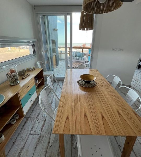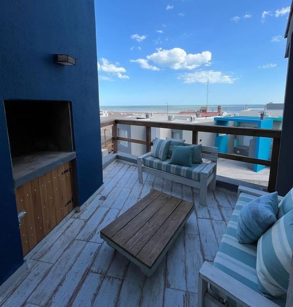 Código 9571-amh69 | AMH69: PARA 6 PERSONAS. El complejo Playa Calma se encuentra a 50 metros del mar. El departamento es para 6 personas, el mismo posee una cochera semicubierta y una piscina en espacios comunes. El primer piso del dúplex ofrece una entrada living/comedor de concepto abierto con vista al mar, que permite el acceso al balcón donde se encuentra la parrilla individual. La cocina posee heladera con freezer, microondas, horno eléctrico, cafetera, exprimidor, licuadora y tostadora junto con los distintos materiales de cocina. El living/comedor posee una mesa para 6 personas, un televisor, aire acondicionado, wifi y por último un toilette. En el segundo piso se encuentra el dormitorio principal con vista al mar, baño en suite y placares embutidos que facilitan la circulación diaria. Este mismo tiene aire acondicionado, mesas de luz, cortinas y aire acondicionado El segundo dormitorio también tiene vista al mar, cuenta con dos camas cuchetas, mesa de luz, ventilador y un baño completamente equipado separado. NO INCLUYE ROPA BLANCA (SERVICIO TERCERIZADO - $8000 POR PERSONA) MIRÁ LAS FOTOS Y VIDEO. CONSULTÁ DISPONIBILIDAD Y RESERVÁ YA, MANDAME UN WHATSAPP AL 2915039957.