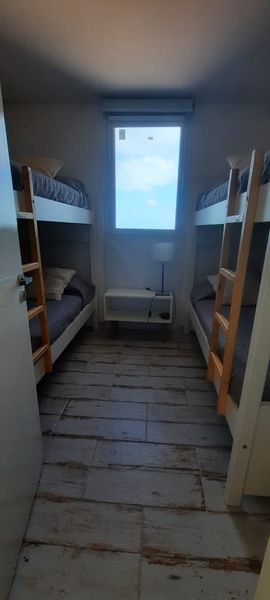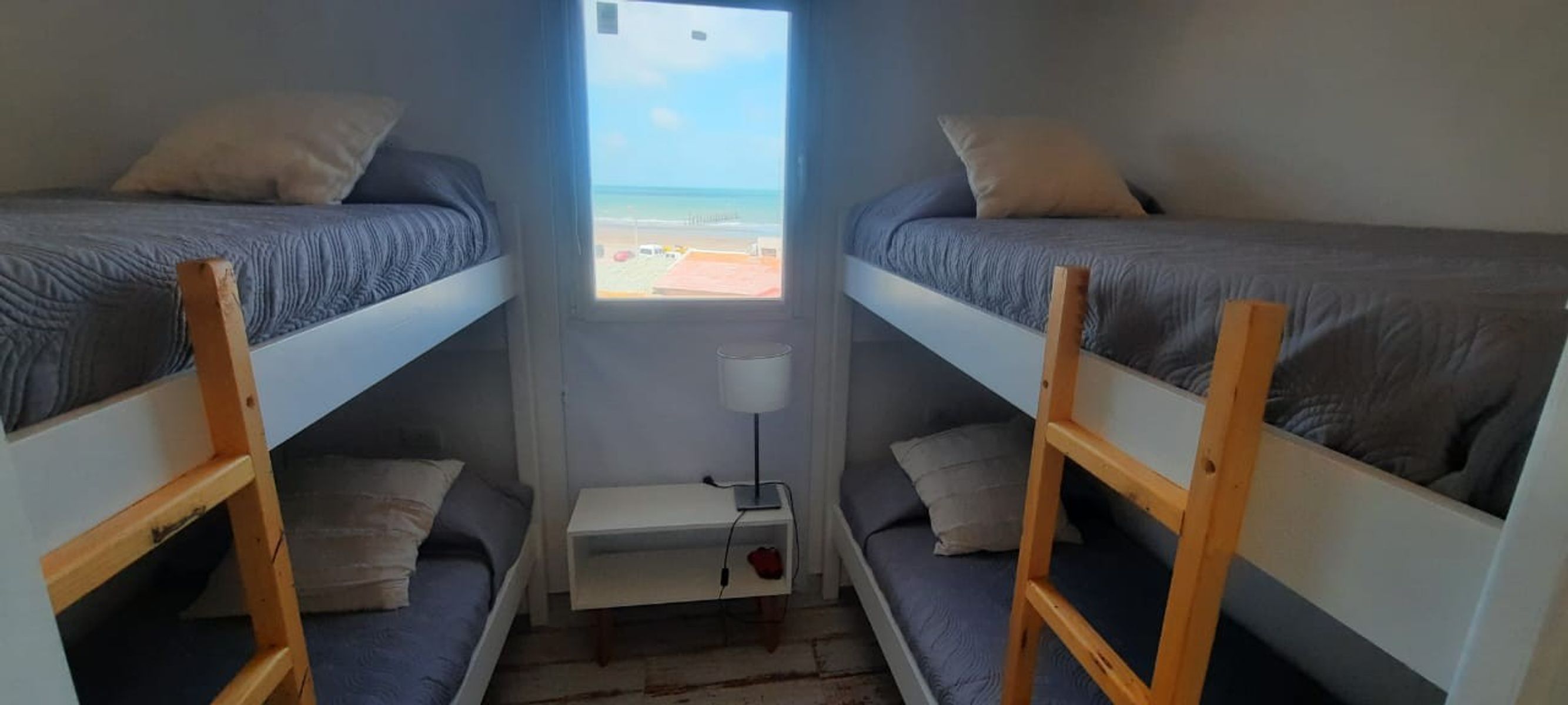 El segundo dormitorio también tiene vista al mar, cuenta con dos camas cuchetas, mesa de luz, ventilador y un baño completamente equipado separado.