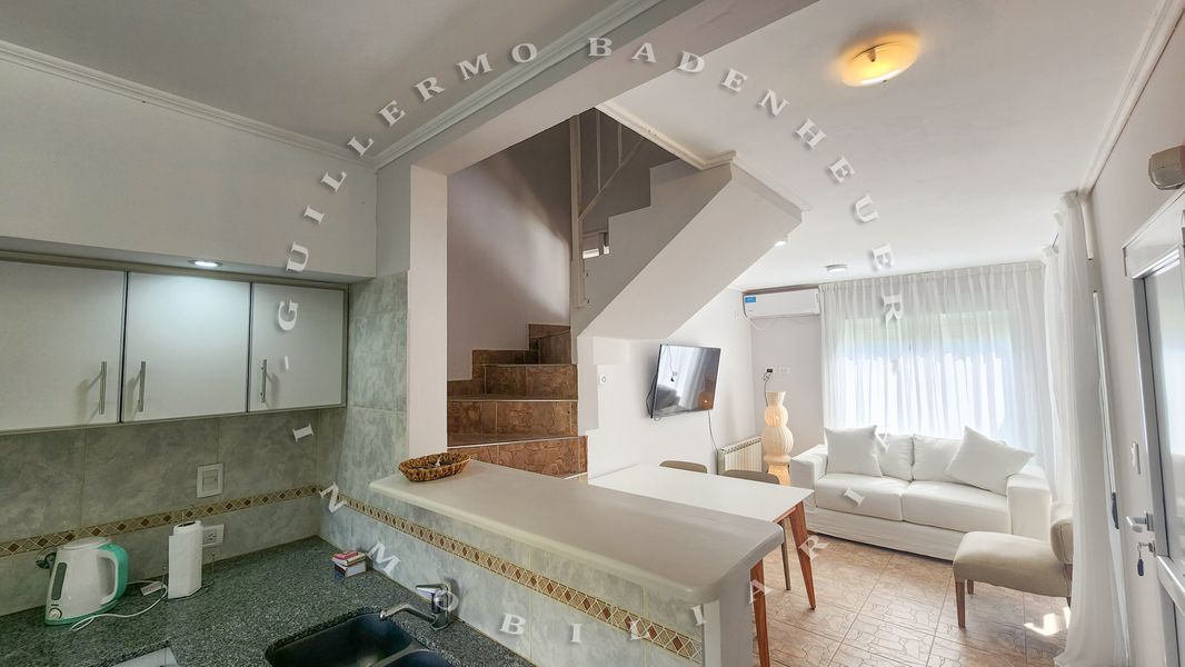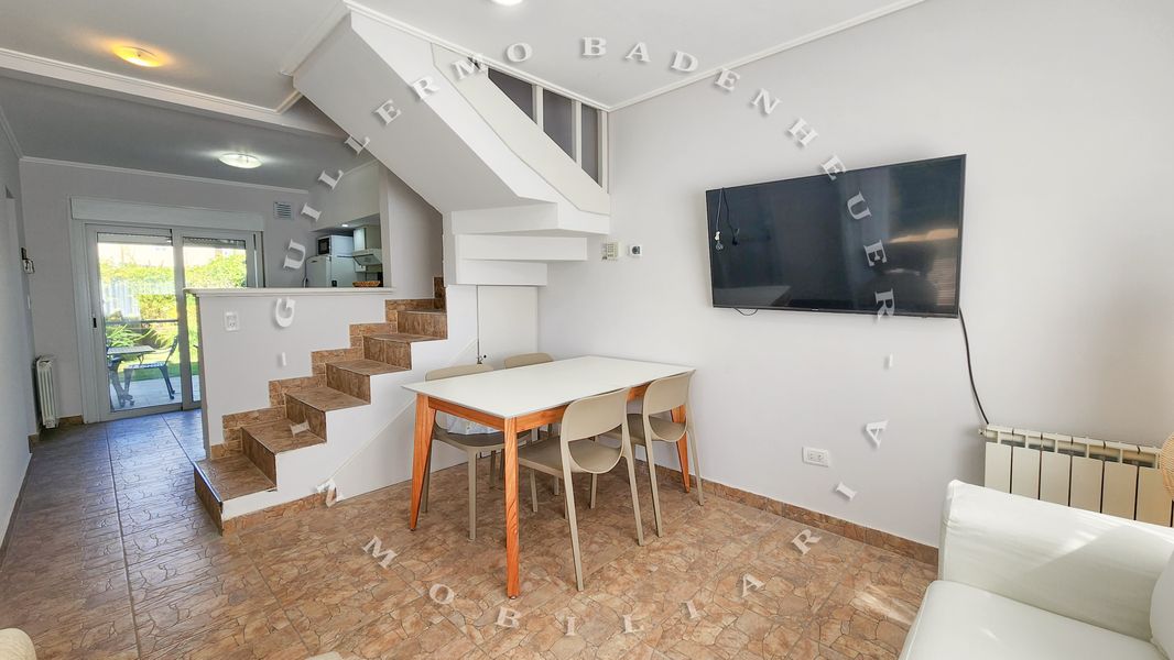 AMH6: PARA 5 PERSONAS. Ubicada en una de las zonas más privilegiadas de Monte Hermoso, en la intersección de Av. Sansot y Santiago Fosatti, este dúplex destaca por su diseño funcional a tan sólo 5 cuadras del mar, en una bajada de playa muy buscada. Ofrece espacios cómodos distribuidos en planta alta con dos acogedores dormitorios y baño completo, desde las habitaciones hermosas visuales con mucho verde y gran iluminación, en planta baja está el living-comedor, cocina con mesada en L, con bajo mesadas y alacenas, baño y lavadero con bacha y conexión para lavarropas. Todas las aberturas de doble vidrio optimizando la calefacción por radiadores y los 3 aires acondicionados existentes. Desde la cocina se sale al patio con ejemplares botánicos ya adaptados para todo el año, un espacio hermosos que incluye mesada, bacha, parrilla. Además, cuenta con entrada para el vehículo.