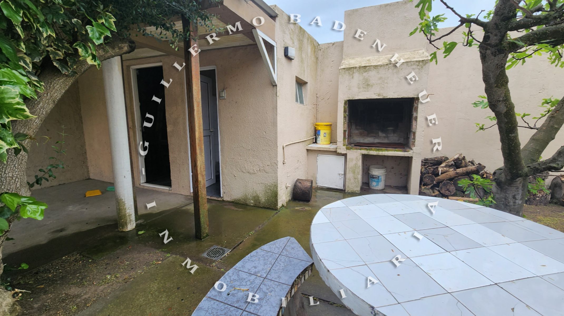 Amplio patio con garaje semicubierto para el vehículo, entran 2 tranquilamente. La parrilla se encuentra en el exterior, seguido a un baño completo de servicio y un galpón para guardar todos los artículos de playa.