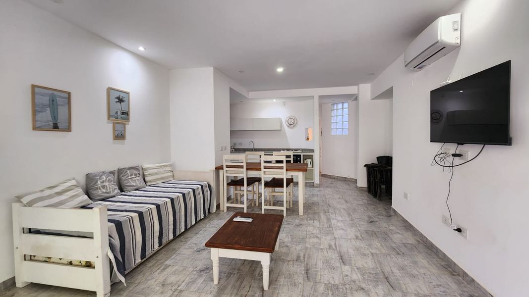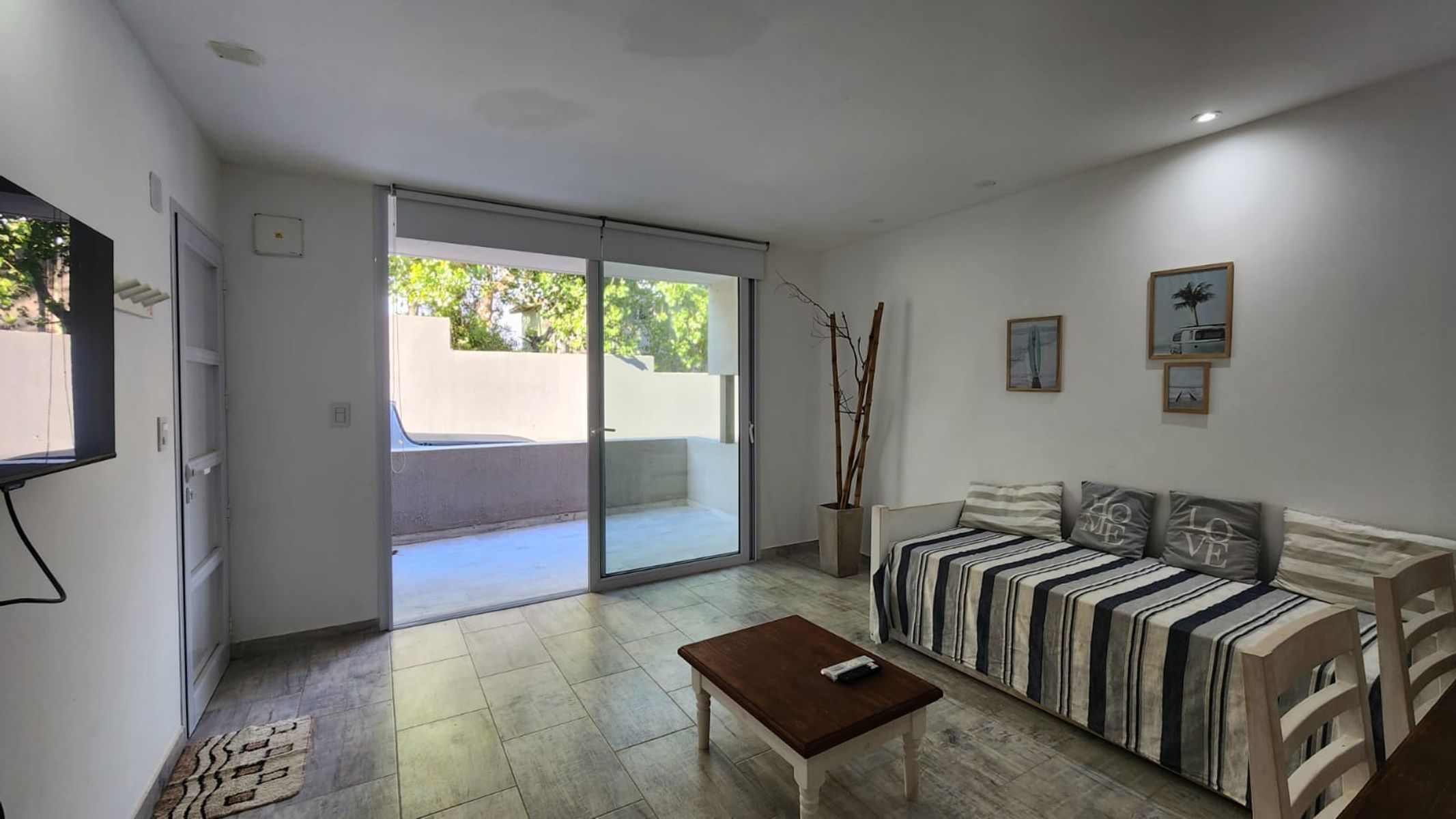 Código 9571-vmh60 | VMH60: El departamento se ubica dentro del complejo de Playa Agreste II a tan sólo 50 metros del mar. Con orientación norte, emplazado entre dos unidades, que lo hacen muy fresco en el verano. Súper moderno y en excelentes condiciones de mantenimiento desde los 2 años de su creación. Cuenta con 2 ambientes. Un living-comedor y cocina integrada. Un dormitorio con placard embutido y un baño. Tiene un pequeño balcón con fogón, al que se accede desde su imponente ventanal de piso a techo desde el living - comedor. Además cuenta con un patio interno propio de 15 m2. Posee una cochera descubierta y una piscina pequeña en espacios comunes. Hermoso departamento con ubicación privilegiada para usarlo como vivienda propia para la felicidad de tu familia o con posibilidad de obtener una excelente rentabilidad.