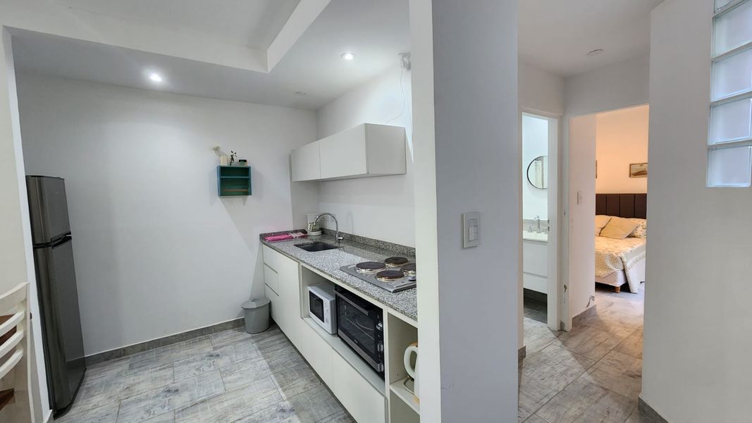 Cuenta con 2 ambientes. Un living-comedor y cocina integrada. Un dormitorio con placard embutido y un baño.