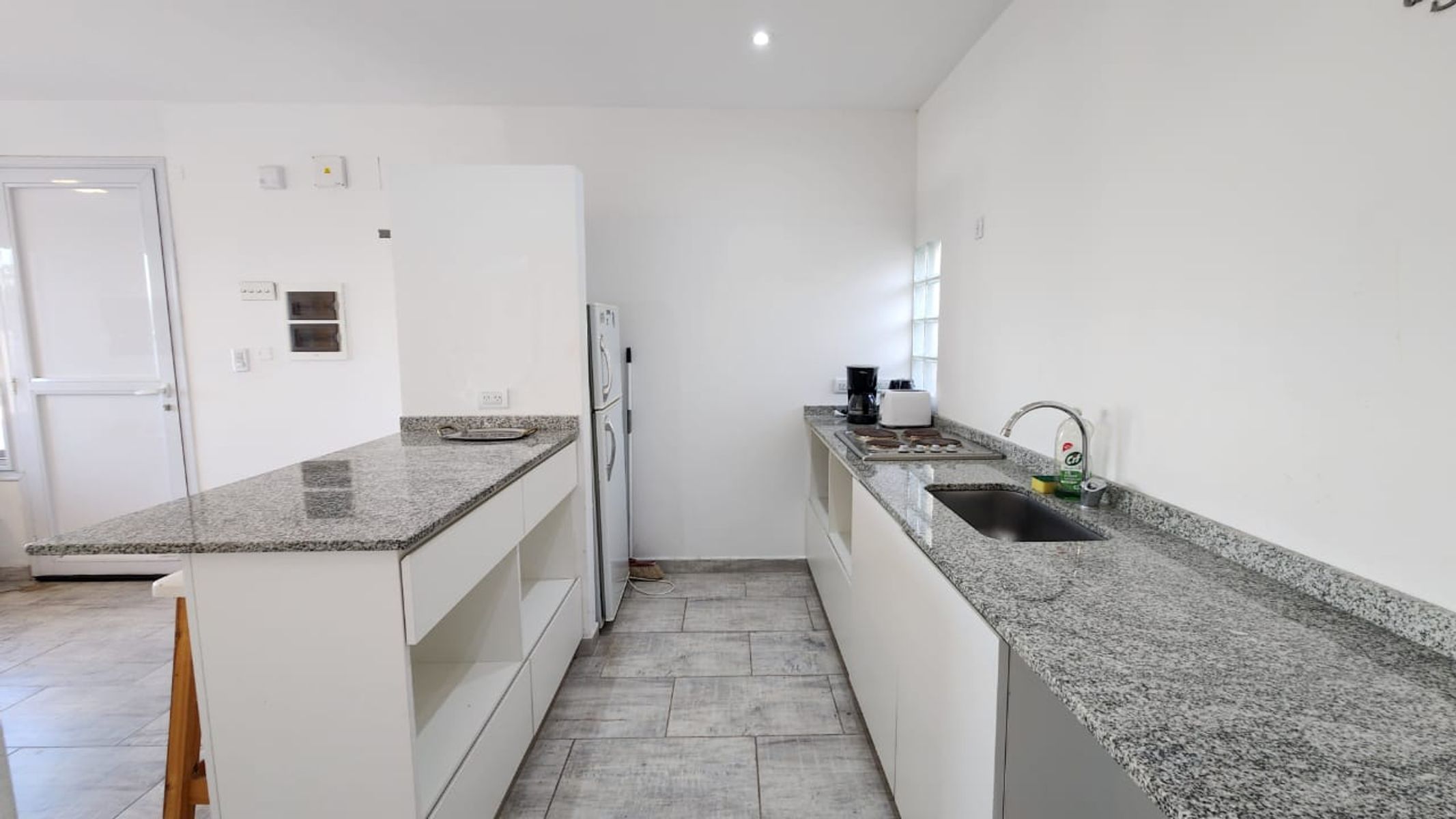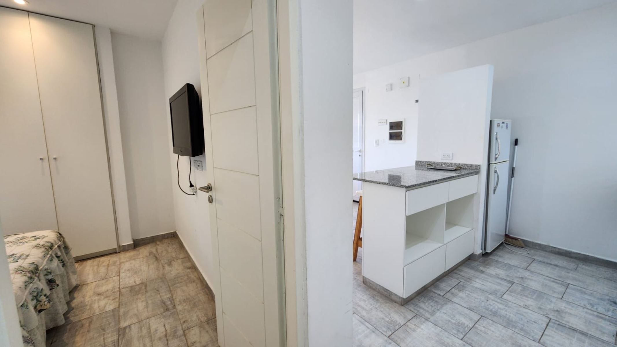 Cuenta con living/comedor y cocina integrada, dos habitaciones y dos baños: un baño completo y un toilette.