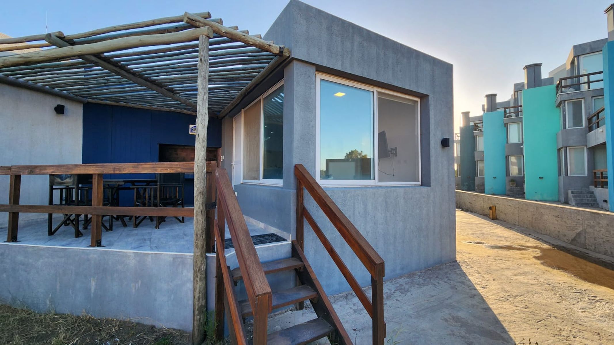 Antes del acceso de la puerta principal, hay un descanso que cuenta con fogón y vista al mar.